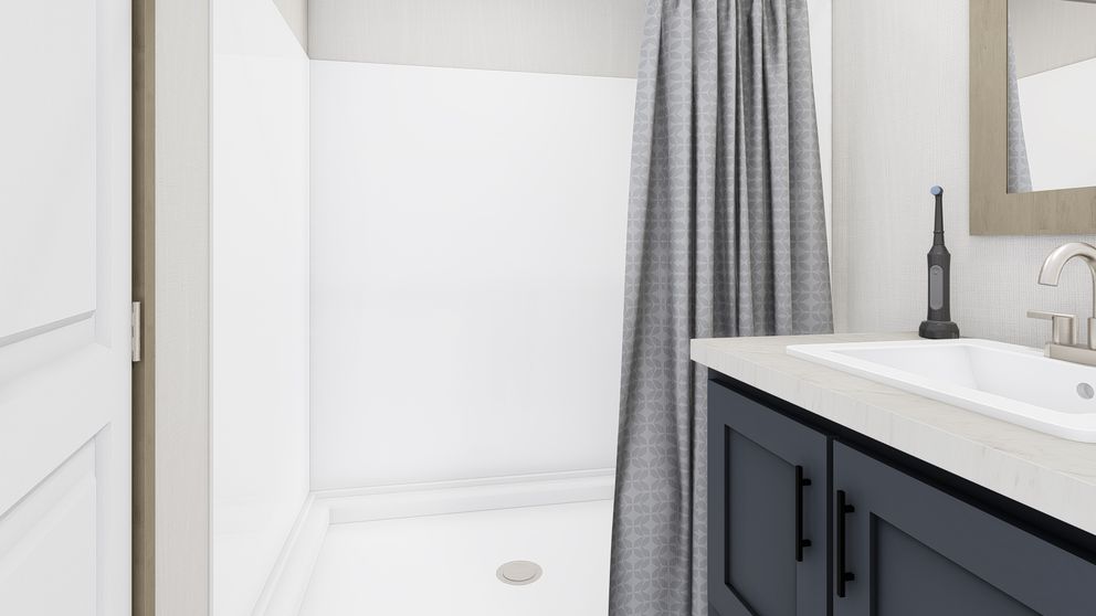 Bathroom Shower: 2”x60” One Piece Fiberglass Soaker Tub/Shower in Primary Baths / 30×60 One Piece Fiberglass Tub/Shower in Guest Bath